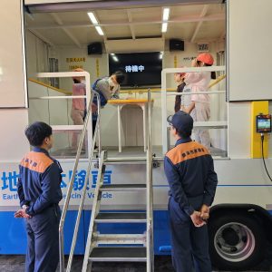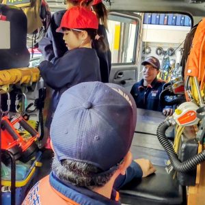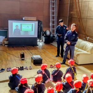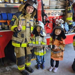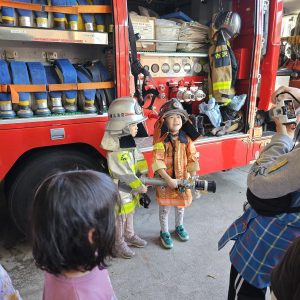 市沢消防出張所に行きました🚒 2025/11/17 4歳児クラスゆき組、5歳児クラスそよ風組が2組に分かれて市沢消防出張所に行きました。消防車に乗せてもらったり、起震車に乗せてもらったりしました。防災クイズも大変勉強になりました。消防士の皆様、お忙しい中とても貴重な体験をありがとうございました。