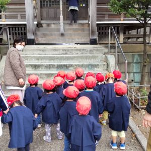2歳児クラスはな組が熊野神社にお散歩に行きました。秋の匂いと静けさに包まれてお参りしました。