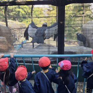お友だちとバスに乗ってお出かけ、始終大興奮の遠足でした。急に涼しくなって動物たちも少し寒そうな様子でした。